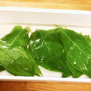 下準備 食用色素(赤)は水に溶いておく。(詳しい方法はコチラ) 桜の葉の塩漬けは塩抜きしておく。(詳しい方法はコチラ) こしあんは6等分にし、ボール状に丸めておく。 作り方 1 耐熱ボウルに道明寺粉、砂糖、塩、水を入れ混ぜ合わせ、食用色素で色付けす桜餅を包むのに用いるのはこのサクラで、6月ころの葉を塩漬けにしたものが使われる。他のサクラに比べて葉の香りが高いため好まれる。また、葉の縁には大きなギザギザがあるのが特徴。 神尾食品の桜葉漬では、静岡県南伊豆地区の大島桜を使用しております。 桜葉漬けの製法 収穫した保存方法 冷暗所保存(開封後要冷蔵) 賞味期限 桜葉は四季を感じる日本を代表する葉です おせち食材 桜の葉塩漬け 香りが違う 極上国産桜葉塩漬け50枚×4パック国産桜葉漬け 商品番号 b3009 価格 2,808円 (税込) 送料別 送料 1,210円 発送日 2日~5日(店舗休業日を除く) 個数 商品に